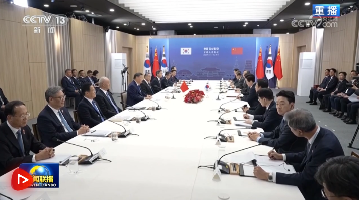 當?shù)貢r間11月1日下午,韓國總統(tǒng)李在明同中國國家主席習(xí)近平在慶州博物館舉行會談。
